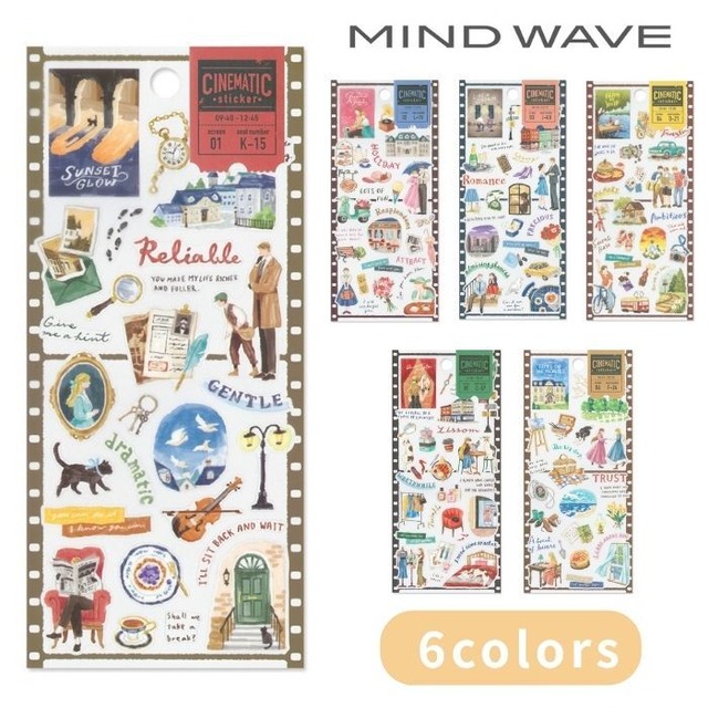 様々なジャンルの架空映画がテーマのシールが新登場。 印象的なシーンやモチーフがピースになっており、どんな物語か想像を膨らませるのも楽しい! フィルムやチケットをイメージしたこだわりのパッケージも魅力です。 パッケージサイズ:H202×W93×D1mm シールサイズ:H200×W90mm 重量:7g 素材:透明PET メーカー:マインドウェイブ