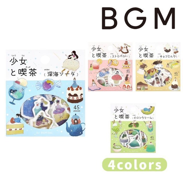 少女と喫茶スイーツが織りなすキュートなシール 女の子がフルーツサンドに挟まれていたり、ケーキがドレスになっていたり。 ただ可愛いだけじゃない、一味違ったフレークシールです。 容量:15designsx3/45枚入り 素材・成分:和紙 メーカー:BGM