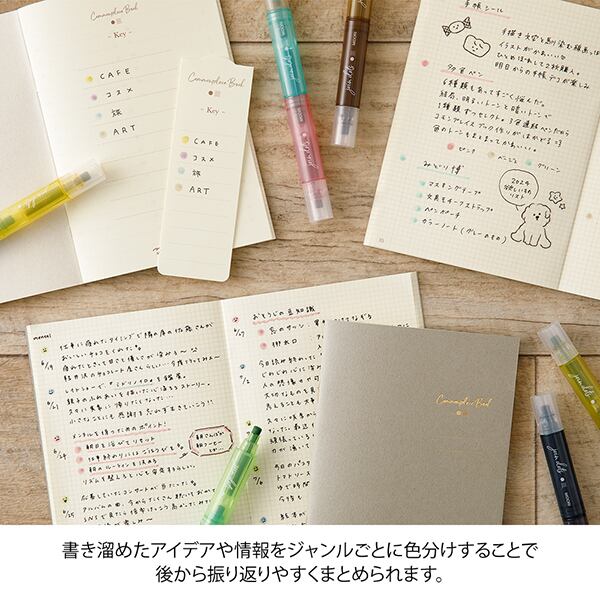 コモンプレイスブックは、自由に書き溜めたアイデアや情報を、ジャンルごとに色分けすることで後から振り返りやすいようにまとめたノートです。
