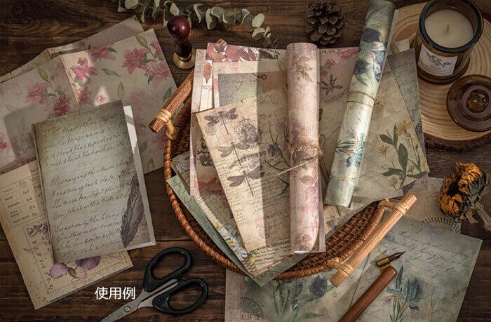 片面印刷なのでメモ紙やお手紙などにも使っていただけます。DIYの素材としても素敵な雰囲気を出してくれます。