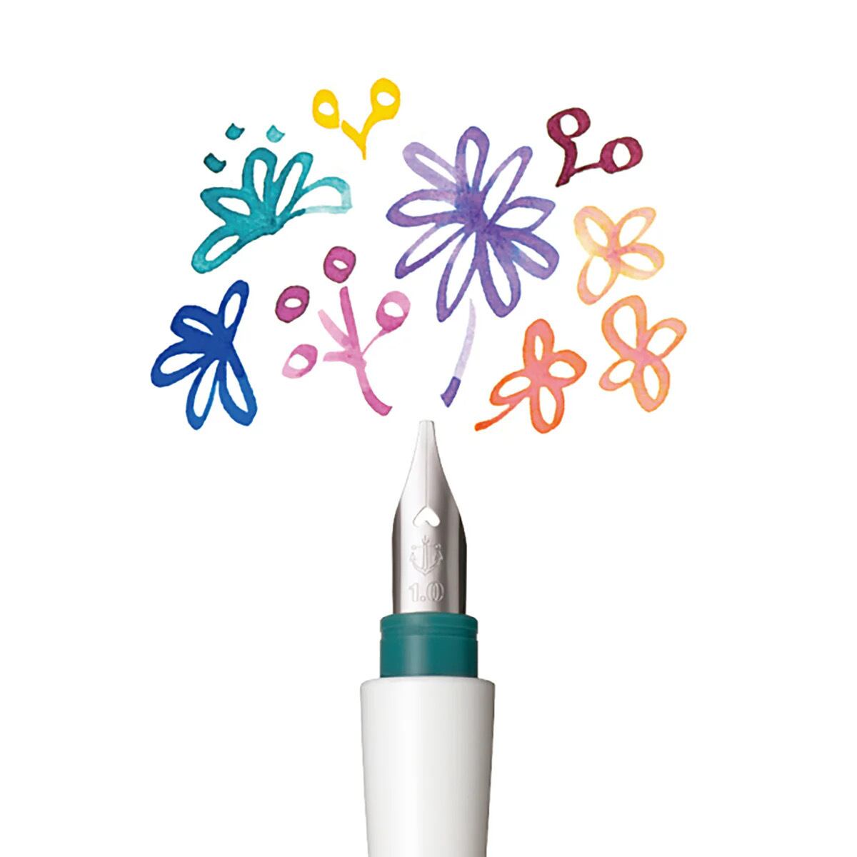 ペン先を軽く水で流すだけで簡単に色替えができるので、インク交換の手間がなく、たくさんの色のインクを気軽に楽しめます。